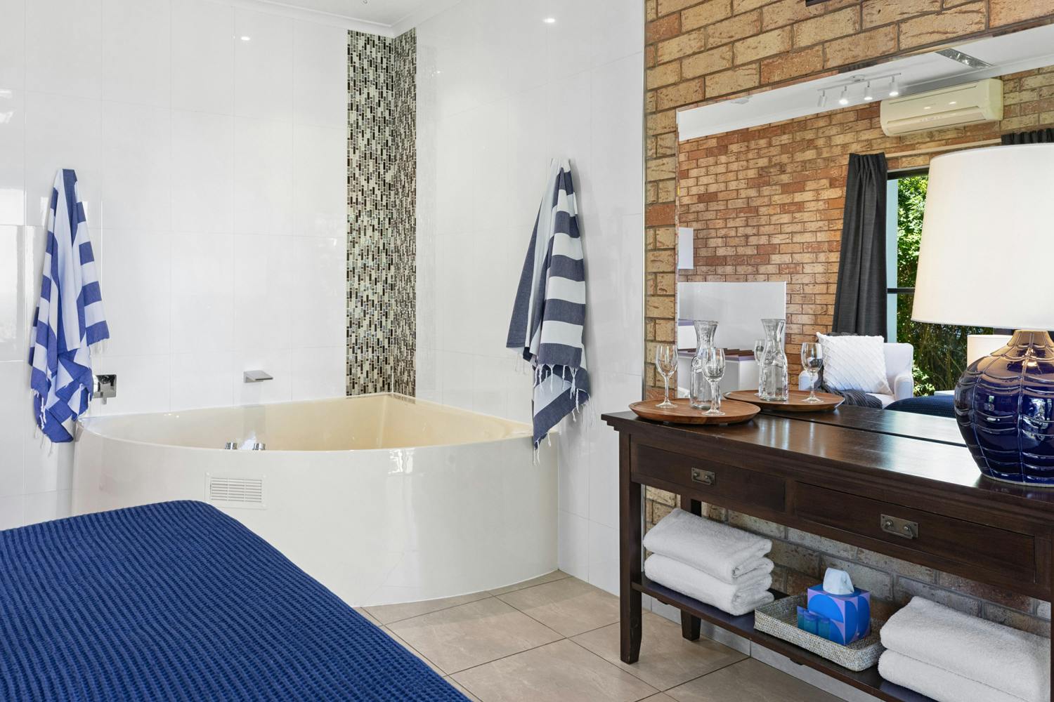 For the ultimate relaxation, indulge in your own private spa experience within the room. Unwind in the soothing comfort of your own spa bath after a day of exploring, with complimentary toiletries to enhance the experience